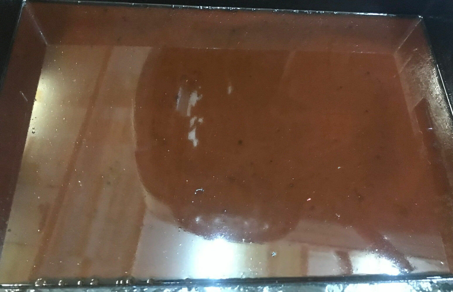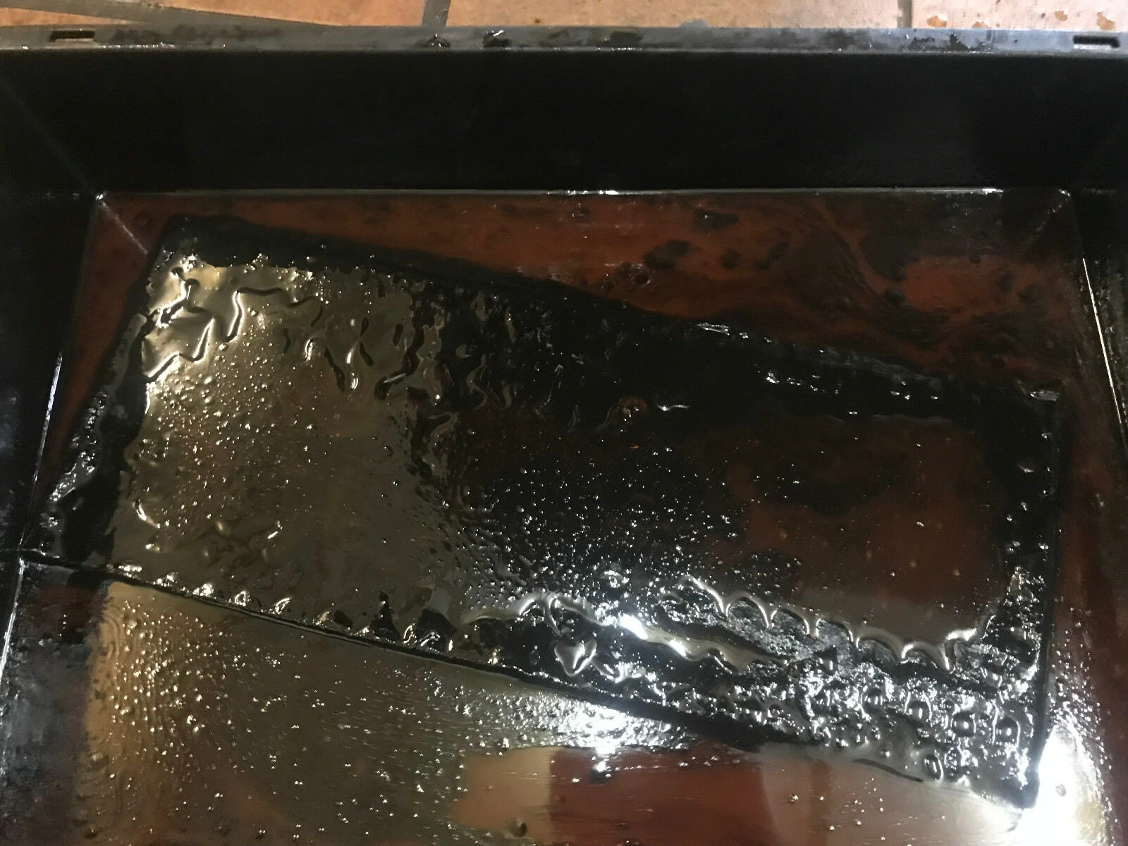 In den Bildern sehen Sie Kühlflüsigkeit in einem Behälter, welche mit ca. 2 Litern Altöl versetzt wurde, nach der Anwendung ist die Kühlflüssigkeit fast wieder im Ursprungszustand ihrer roten/lila Farbe.