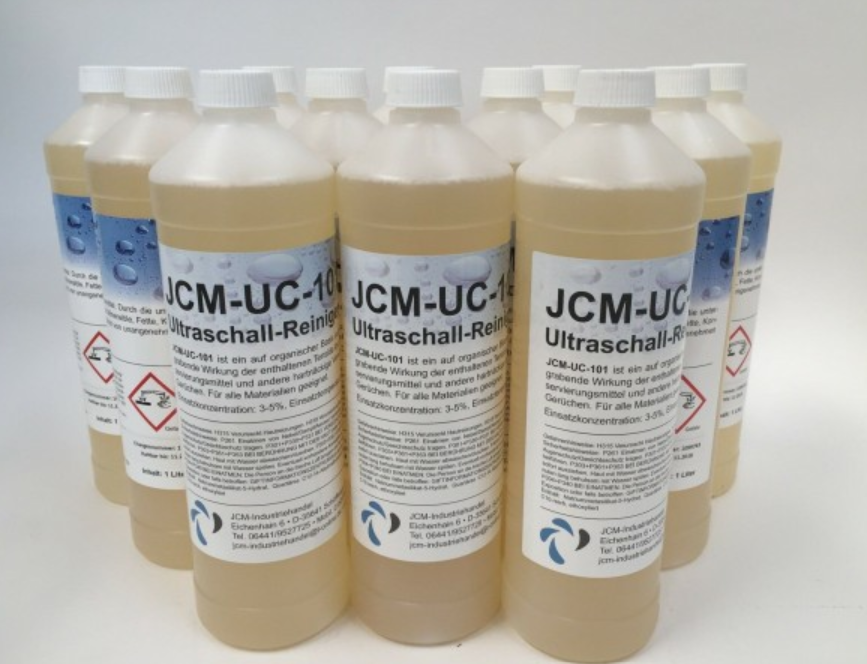 Entschäumer bereits enthalten. JCM UC 101 ist ein flüssiger Ultraschall Reiniger, die Lösung für alle, die keine Kompromisse in der Teilereinigung eingehen möchten. Der Cleaner wurde ausschließlich für die anspruchvollsten Aufgaben entwickelt. Mit leichtem Korrosionsschutz und hervorragendem Aluminiumschutz.JCM UC 101 Ultraschallreiniger kommt in der Industriellen Instandsetzung zum Eisnatz, bei extremen Verschmutzungen, gewährleistet der Reiniger stärkste Reinigungsergebnisse, über einen sehr langen Zeitraum. Ideal für die Veragserreinigung geeignet.
